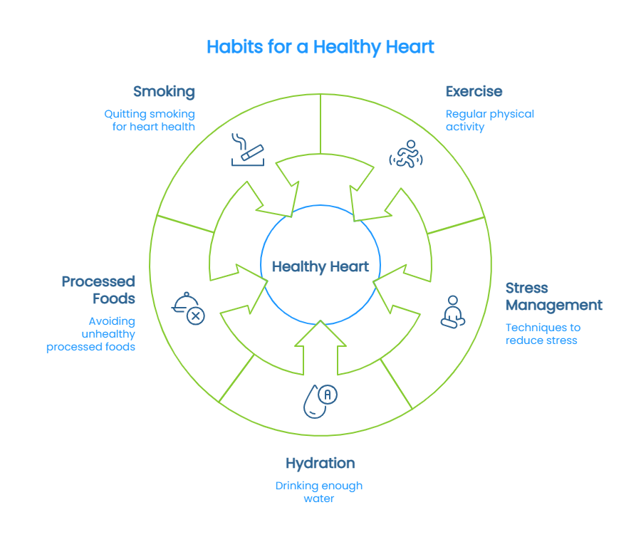 ✔ Limit Processed Foods: Avoid excess sugar, refined grains, and trans fats that harm heart health.