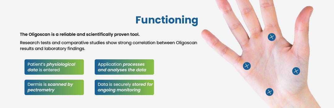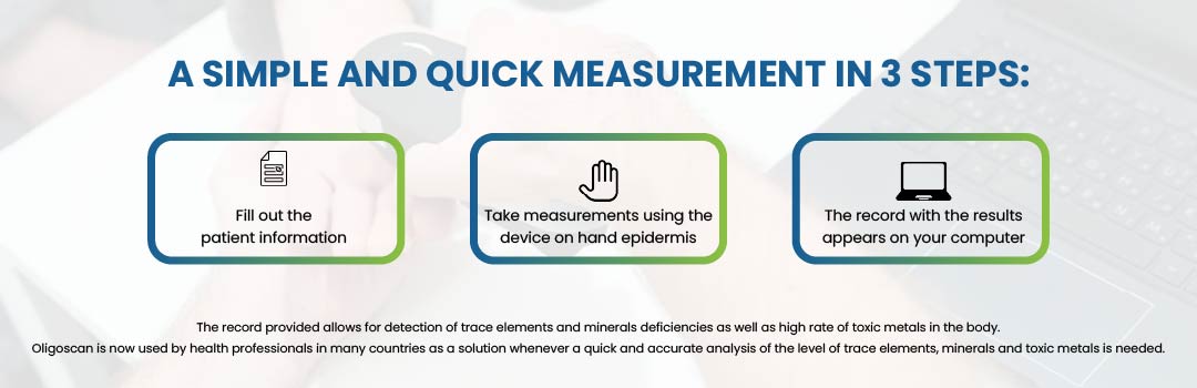 OligoScan measures the levels of 30+ essential minerals, 15+ toxic heavy metals, and your oxidative stress / antioxidant status directly from your tissue. It also provides insights on detox capacity, metabolism, digestion, skin, hair, joints, and mental balance.
